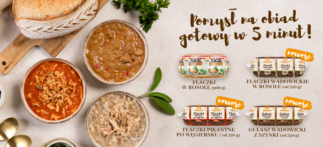 Przedstawiamy nową linię gotowych dań obiadowych od Dobrowolskich, stworzoną z myślą o tych, którzy cenią tradycyjny smak i wygodę przygotowania. To idealne rozwiązanie dla zabieganych – w zaledwie 5 minut możesz cieszyć się ciepłym, domowym posiłkiem.